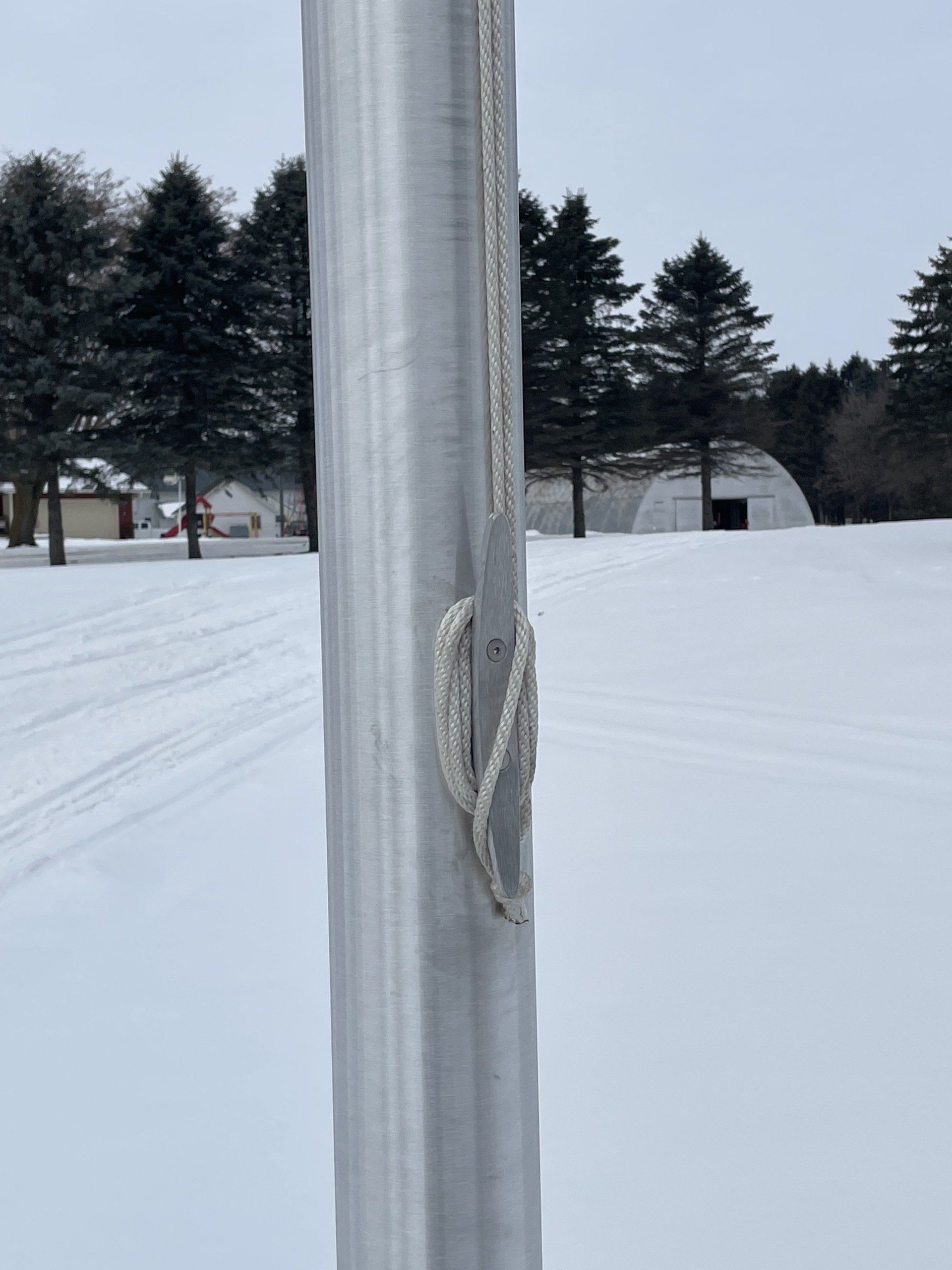 Features 5/16” Solid Braid Nylon Rope outside the flagpole with revolving truck assembly and external cleat for rope tie off. For flagpoles up to 35’ in height and flag size up to 6’ x 10’.
